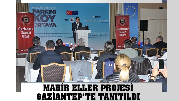 <p style="font-weight: 400;"> “Mesleğini belgele, farkını koy ortaya” sloganıyla başlatılan Mahir Eller Projesi’nin detayları Gaziantep’te düzenlenen toplantı ile anlatıldı.</p>