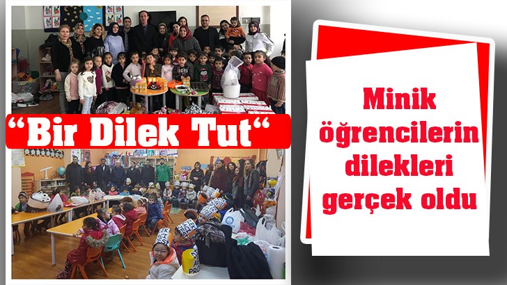 <p>Nazire Eruslu anaokulu öğretmenleri Şenel Çiftçi ve Duygu Alpay Karataş tarafından yürütülen “Bir Dilek Tut“ isimli e Tiwing projesi, Gaziantep Şahinbey ilçe Cevizli Köyü ilkokulu ve Gaziantep ilçe Şehitkamil Bahattin Teymur anasınıfı öğrencilerinin dileklerini gerçekleştirdi </p>
