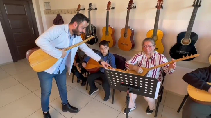 Şahinbey Belediyesi’ne bağlı Dumlupınar Sosyal Tesisinde her yaştan vatandaş çeşitli kurslardan faydalanırken, 50 yaşındaki Suna Duman ise bağlama çalmayı öğreniyor.