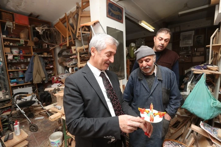 Şahinbey Belediye Başkanı Mehmet Tahmazoğlu tahta beşik, tahta oyuncak, elek gibi unutulmaya yüz tutmuş olan eşyaları üreten Abdullah Toprakçı’yı Konak Mahallesi’ndeki atölyesinde ziyaret etti.