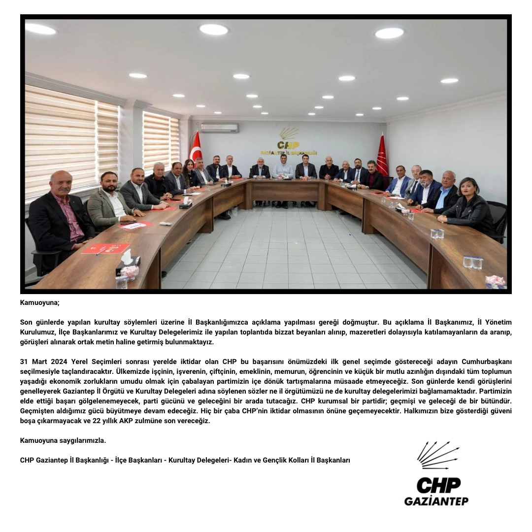 Gaziantep İl Örgütü ve Kurultay Delegeleri adına söylenen sözler ne il