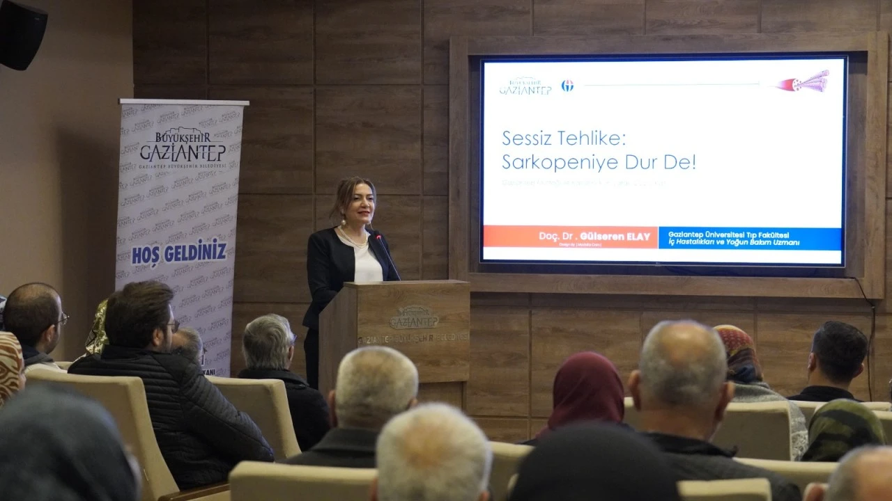 Etkinliğin konuk konuşmacılarından Gaziantep Üniversitesi Tıp Fakültesi İç Hastalıkları ve Yoğun Bakım Uzmanı Doç. Dr. Gülseren Elay, sarkopeninin belirtileri, risk faktörleri ve önleme yöntemleri hakkında kapsamlı bir sunum gerçekleştirdi. Elay, toplumda sessiz bir tehlike benzetmesi yaptığı sarkopeni hastalığının, kasları güçlendirmek, canlandırmak ve korumak yoluyla önlenebileceğini söyledi. Vatandaşların bu konuda bilinçlenmesinin öneminin büyük olduğunun altını çizen Elay, hastalıkta erken teşhisin ve hareketli yaşamın bir hayli önemli olduğuna dikkati çekti.