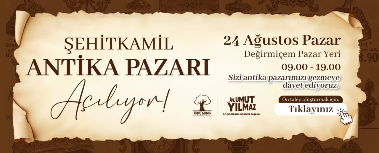 Şehitkamil Belediye Başkanı Umut Yılmaz’ın sözünü verdiği Şehitkamil Antika Pazarı, 24 Ağustos Pazar günü kapılarını açmaya hazırlanıyor. 09.00-19.00 saatleri arasında Değirmiçem Pazar Yeri’nde ziyaretçilerini ağırlayacak Şehitkamil Antika Pazarı’nda birbirinden eşsiz eserler görücüye çıkacak. Ön talep başvurularının devam ettiği pazarda antika eşyalar, tesbih, radyo, plak, para, kilim, gramafon, gaz lambası, bakır, porselen, biblo ve binlerce antika ile eski zamanların ruhunu taşıyan eşsiz parçalar, koleksiyonluk objeler ve nostaljik anıların yeniden değer bulacak.