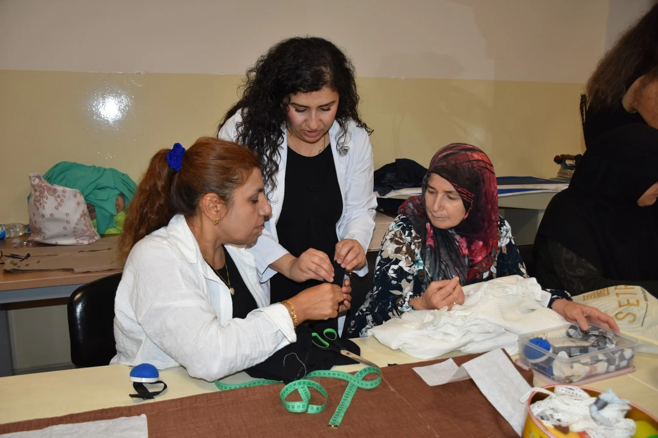 Giyim Öğretmeni Sibel Kızıldağ ise, "Hanımlar burada hem kendilerine hem de yakınlarına kıyafetler, çantalar üretebiliyor. Örneğin 50 liraya aldıkları bir kumaştan bir gömlek dikip ortaya çıkarabiliyorlar. Bu da insana kendi emeğiyle bir şey üretmenin mutluluğunu yaşatıyor. Evden çıkıp ücretsiz bir kursta güzel bir eğitim alabiliyor. Buradan aldığı eğitimle iş yeri açan öğrencilerimiz de oldu. Bir şeyler üretmek insana her zaman iyi geliyor. Bu hem bizlere hem de öğrencilerimize büyük katkı sağlıyor" diye konuştu.
