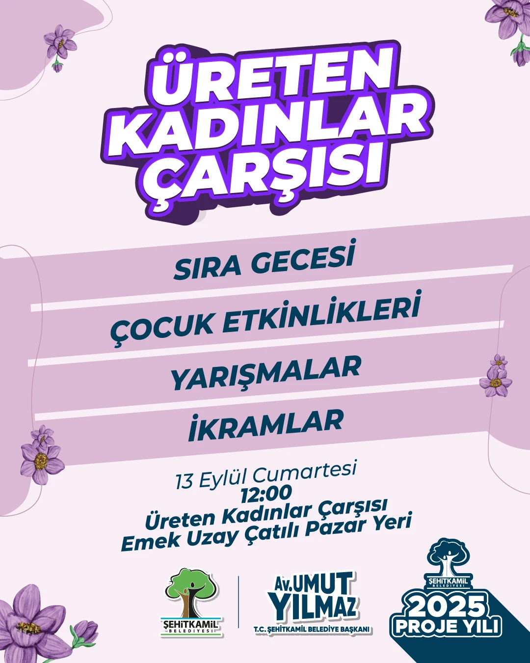 Şehitkamil Belediye Başkanı Umut Yılmaz, Üreten Kadınlar Çarşısı’nın en önemli amaçlarından birinin kadın girişimcilerin desteklenmesi olduğuna dikkat çekerek, “Bu projede kadınlarımız bin bir emekle ortaya çıkardığı el emeği, göz nuru ürünlerini doğrudan tüketiciyle buluşturuyor. Kadınların buluşma noktası haline gelen Üreten Kadınlar Çarşısı, bu hafta daha renkli ve eğlenceli geçecek. Tüm vatandaşlarımızı 13 Eylül 2025 Cumartesi günü saat 12.00’da kapılarını açacak pazara bekliyorum” dedi.