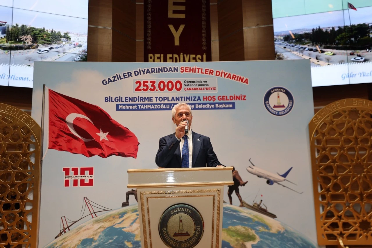 Şahinbey Belediyesi tarafından düzenlenen bilgilendirme toplantısında öğrencilerle bir araya gelen Şahinbey Belediye Başkanı Mehmet Tahmazoğlu, gençlere Çanakkale Zaferi’nin önemini anlatarak “Çanakkale, milletimizin iman gücüyle destan yazdığı bir topraktır. Bu projeyle gençlerimizin, ecdadın hangi şartlarda mücadele ettiğini görmelerini, vatan sevgisini daha güçlü hissetmelerini istiyoruz. Çünkü geleceğimizi emanet edeceğimiz gençlerimizin, bu toprakların hangi bedellerle kazanıldığını bilmesi çok önemlidir. Şahinbey Belediyesi olarak ‘Gaziler Diyarından Şehitler Diyarına’ projesini gerçekleştirdik. Çanakkale ziyaretlerinde 253.000 vatandaşımızı ve öğrencimizi ecdatla buluşturuyoruz. Türkiye’de uçakla gençleri Çanakkale'ye götüren başka bir proje yok. Çanakkale’de ecdadımız yedi düvele karşı çok büyük mücadele vermiş. İmanlı göğsünü siper etmiş. 15 yaşındaki gençler vatan elden gitmesin, ezanımız dinmesin diyerek canlarını seve seve feda etmişler. Biz de onlara teşekkür ziyareti olarak Çanakkale ziyaretlerini düzenliyoruz. Vatanımızın milletimizin kıymetini çok iyi bilmeliyiz. Çanakkale’ye öğrencilerimizi ve vatandaşlarımızı bu nedenle götürüyoruz” dedi.