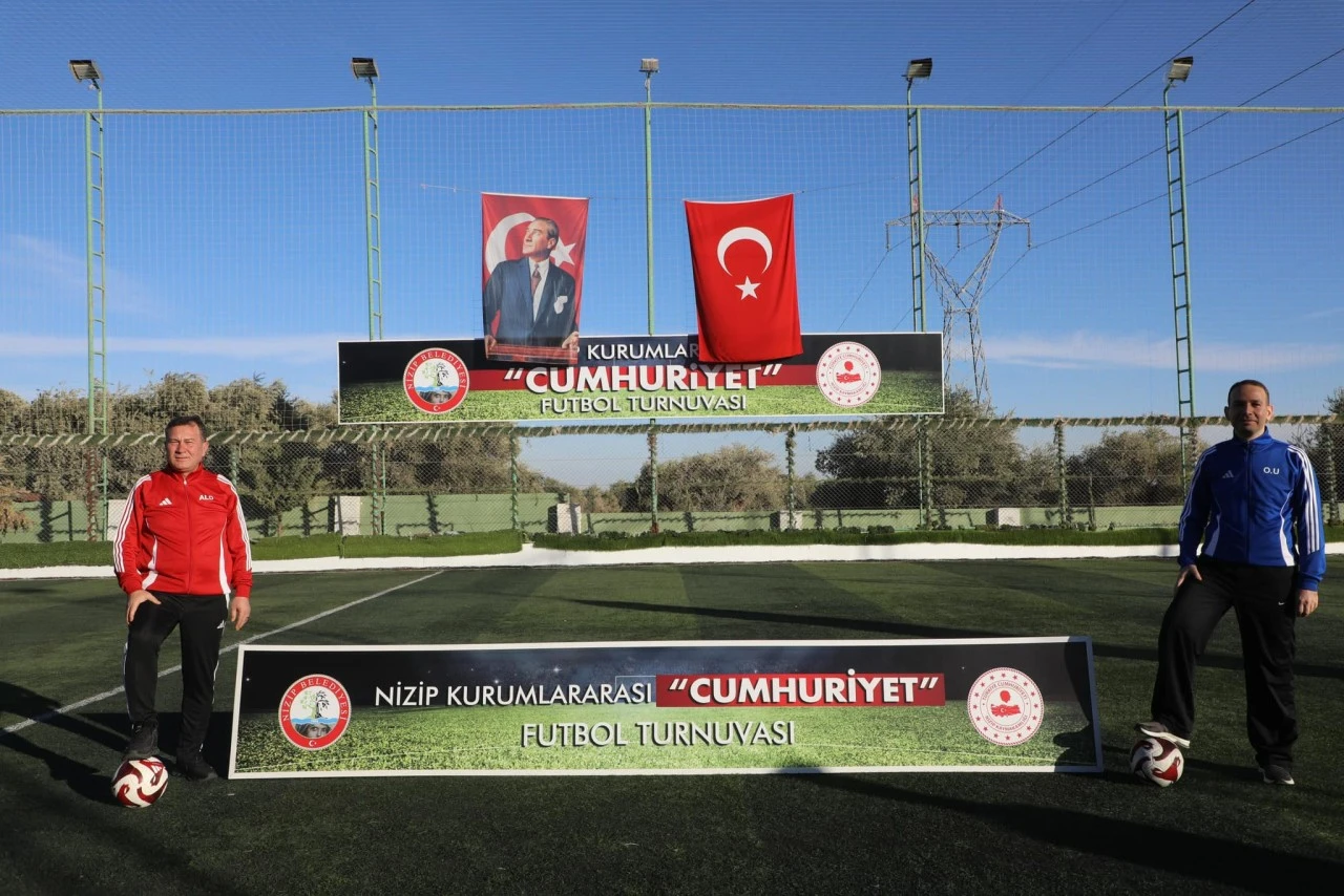 ‘Nizip Kurumlararası ''Cumhuriyet'' Futbol Turnuvası’, Nizip İlçe Kaymakamı Osman Uğurlu ve Nizip Belediye Başkanı Ali Doğan’ın başlama vuruşu ile başladı.
