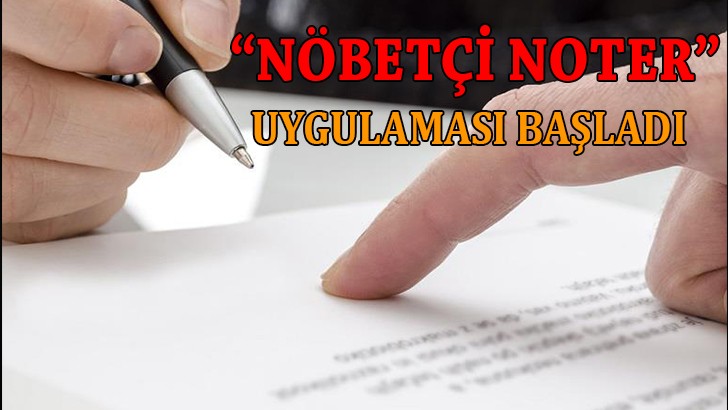 <p>Nöbetçi Noterlik Uygulaması başlamış olup, 06.04.2019 Cumartesi ve 07.04.2019 Pazar Günü Gaziantep 1.NOTER hizmet vermektedir.</p> <p>Noterlerin hafta sonunda da görev yapmalarının, hafta içi çalışan vatandaşlar için büyük kolaylık sağlayacağı, özellikle ikinci el araç alım-satımda etkili olacağı belirtiliyor. Bu tarihten itibaren her hafta sonu noterlerden biri nöbetçi olacaktır. Nöbetçi noterliklerde bütün işlemler yapılabilecektir. Mesai saati 09.00-17.00.</p> <p>Şehrinizdeki nöbetçi noterlikleri Türkiye Noterler Birliği internet üzerinden ilan edecektir.</p>