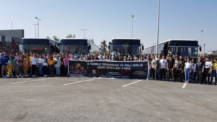 <p style="font-weight: 400;">15 Temmuz Demokrasi ve Milli Birlik Günü Şehitleri Anma Gezisi programına katılan 155 öğrenci, Büyükşehir Belediyesi önünden 4 otobüsle hareket etti. Gaziantep merkez ve ilçelerden gelen lise öğrencileri, önce Niğde’ye Şehit Ömer Halisdemir’in kabrine, sonra Ankara TBMM ve Anıtkabir’e son olarak İstanbul’da Sultan Ahmet Cami, Şehitler Köprüsü ve 15 Temmuz Şehitler Derneğine gidecek.</p>
