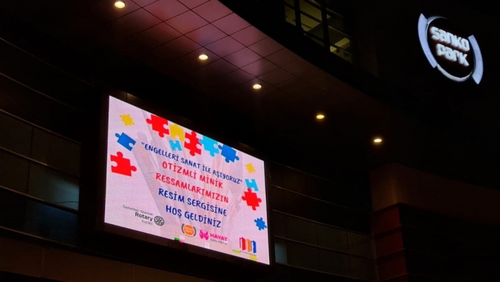 <p>Düzenlenen resim atölyesinde ortaya çıkan eserler, Gaziantep’in en yoğun alışveriş merkezi olan Sanko Park AVM’de düzenlenen bir sergi ile halkla buluştu. Otizmli küçük ressamların birbirinden güzel eserleri 2 Nisan Dünya Otizm Farkındalığı Günü münasebetiyle de halkın yoğun ilgisiyle karşılandı.</p> <p><strong>Otizmli Çocuklar Önemli İşbirliği</strong></p> <p>Yesemek Rotary Kulübü Derneği Başkanı Tayfun SAKICI, etkinlikle ilgili olarak şunları söyledi, “Otizmli küçük ressamlarımızın minik parmaklarından çıkan bu resimler, otizm konusunda farkındalık yaratmak, onların dünyalarına ayna tutmak amacıyla, Sanko Park AVM ve Hayat Özel Rehabilitasyon Merkezi desteğiyle gerçekleştirildi. Otizmli ressamlarımızın eserlerini bu sergi vasıtasıyla halkımızla buluşturan tüm kurum ve kuruluşlara teşekkürlerimizi sunuyoruz” dedi.</p>