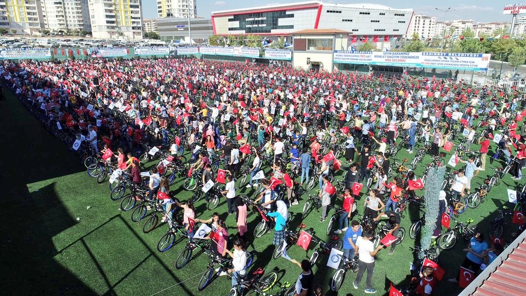 <p style="font-weight: 400;">Daha önce İstanbul’un Fethi’nin tarihi olan 1453 adet bisiklet dağıtımı yapan Şahinbey Belediyesi bu defa da Cumhuriyet’in kuruluş yılı olan 1923 adet bisiklet dağıtımı gerçekleştirerek başarılı öğrencileri ödüllendirdi. Akkent Spor Köyü Ampute Futbol Sahası’nda düzenlenen törene Adalet Bakanı Abdulhamit Gül, Gençlik ve Spor Bakanı Mehmet Muharrem Kasapoğlu, AK Parti MKYK Üyesi Hatice Merve Tatar, AK Parti Gaziantep Milletvekilleri Ahmet Uzer, Nejat Koçer, Mehmet Sait Kirazoğlu, Derya Bakbak, Müslüm Yüksel, Gaziantep Valisi Davut Gül, AK Parti İl Başkanı Eyüp Özkeçeci, Büyükşehir Belediye Başkanı Fatma Şahin, Şahinbey Belediye Başkanı Mehmet Tahmazoğlu, Şehitkamil Belediye Başkanı Rıdvan Fadıloğlu, protokol üyeleri, vatandaşlar ve öğrenciler katıldı. </p>