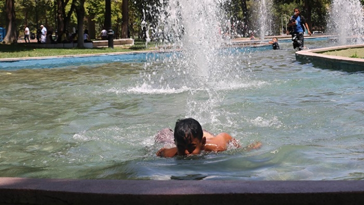 <p>Gaziantep'te hava sıcaklığının 36 dereceye ulaşmasıyla vatandaşlar parklarda serinlerken, Gaziantep'te yüzme havuzuna gitme imkanı bulamayan çocuklar ise süs havuzuna girerek serinlemeye çalışıyor. Aşırı sıcaktan bunalan çocuklar Yüzüncü Yıl Parkı'nda bulunan süs havuzuna girerek serinledi. Bir süre havuzda eğlenceli dakikalar yaşayan çocuklar, havanın çok sıcak olduğunu, sıcak havadan bunaldıkları için süs havuzunda serinlediklerini ve yüzmeyi çok sevdiklerini belirtti. </p>
