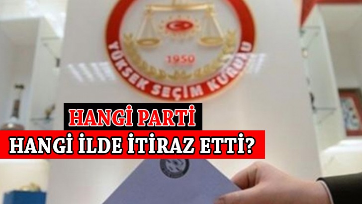 <p>İl seçim kuruluna ve il birleştirme tutanaklarına karşı 8 Nisan’da başlayan YSK’ya itiraz süreci tamamlandı. Seçim sonuçlarına göre siyasi partiler 25 ilde YSK’ya itirazda bulundu. İşte o itirazlar;</p>