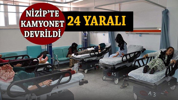 <p>Edinilen bilgiye göre, Gaziantep-Nizip otoyolunda seyir halinde bulunan M.K. idaresindeki 01 VBN 92 plakalı kamyonet, lastiğinin patlaması sonucu yoldan çıktı. Devrilen kamyonetin kasasındaki yaralılar yola savruldu. Bölgeye çok sayıda sağlık ve polis ekibi sevk edildi. Yaralılar, sağlık ekipleri tarafından hastanelere kaldırıldı </p>