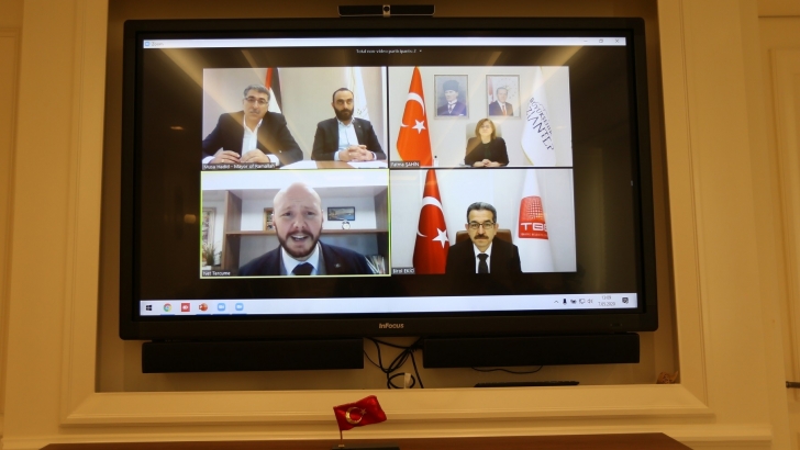 <p style="font-weight: 400;">Başkan Şahin, toplantıda; pandemi sürecinde ortak masa oluşturulup Filistin’e online eğitim, araç desteği ve sosyal yardım yapılaması için devreye girdi, ayrıca ülkenin Corona Virüs’le (COVİD-19) mücadeleye karşı Avrupa’ya ve ABD’ye göre başarılı olmasındaki etmenleri sıraladı. Filistinli Başkan Musa Hadid ise uluslararası arenada Türkiye’nin salgına karşı çalışmalarını dikkatle takip ettiğine vurgu yaparak Türkiye’nin tedbir haritasından övgüyle bahsetti.</p>