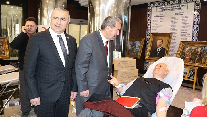 <p>Kan bağışı kampanyası hakkında konuşan Gaziantep Ticaret Odası (GTO) Yönetim Kurulu Başkan Yardımcısı Sadık Koçak, geçen yıl ilkini düzenledikleri kan bağışı kampanyasında 150 ünite kan verdiklerini dile getirerek, “GTO olarak Gaziantep’e gazilik unvanının verilişinin 97'nci yıl dönümü dolayısıyla ikinci kan bağışı kampanyası düzenledik. Daha önce 80 kez kan bağışında bulundum şimdi 81. kez kan bağışında bulunacağım. Geçen yılki kan bağışı kampanyasında 150 ünite kan vermiştik. Bu yıl katlayarak devam edeceğini inanıyoruz. Ayrıca Zeytin Dalı Harekatından dolayı verdiğimiz bu kan bağış kampanyasını Mehmetçiklerimize ithaf ediyoruz" diye konuştu.</p>