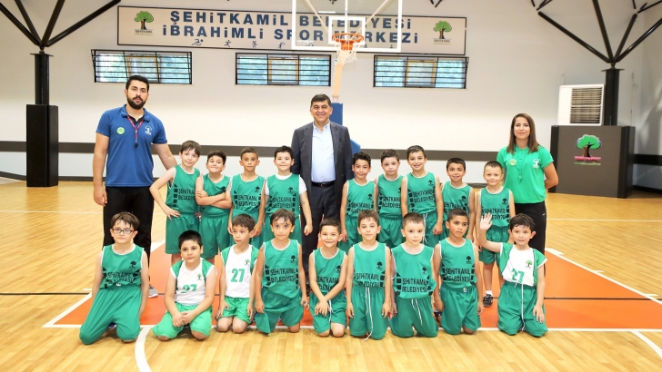 <p>Türkiye Basketbol Federasyonu (TBF) Gaziantep İl Temsilciliği tarafından organize edilecek olan 2019-2020 sezonu basketbol altyapı liglerinde 10 farklı kategoride mücadele edecek olan Şehitkamil Belediye Spor Kulübü, yeni sezon hazırlıklarına başladı. İbrahimli Spor Merkezi’nde Antrenör Cuma Ağcabay nezaretinde antrenmanlara başlayan yeşil-siyahlılar; günü sabah atletizm, akşam saatlerinde ise salonda yaptıkları çalışmalarla tamamlıyorlar. İbrahimli Spor Merkezi’nde gerçekleştirilen basketbol yaz spor okulu çalışmaları sonrasında parke üzerine çıkan yeşil-siyahlı dev adamların misafiri olan Şehitkamil Belediye Başkanı Rıdvan Fadıloğlu, genç basketbolcularla sohbet ederek, teknik adamlardan hazırlık sezonunda gerçekleştirilen faaliyetlerle ilgili bilgiler aldı. </p>